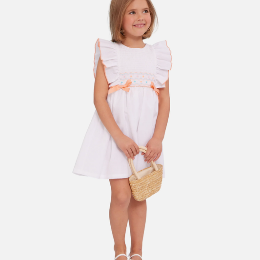 VESTIDO BLANCO CHONGUITOS ANARANJADOS