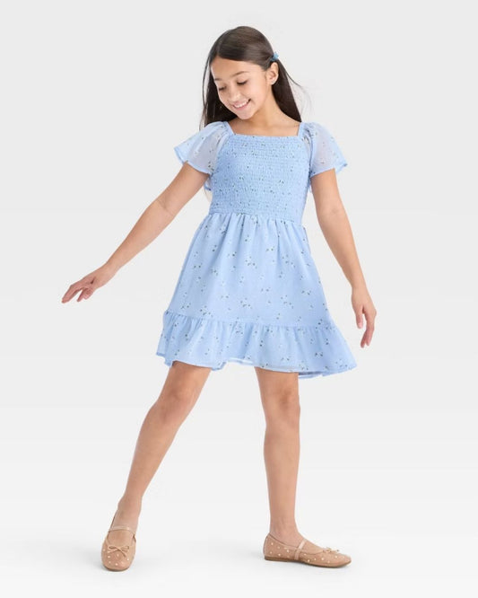 VESTIDO CAT & JACK FLOREADO VERDE SALMON