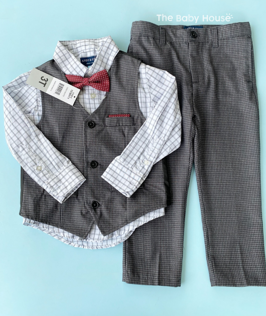 TRAJE FORMAL CHALECO GRIS CORBATIN ROJO