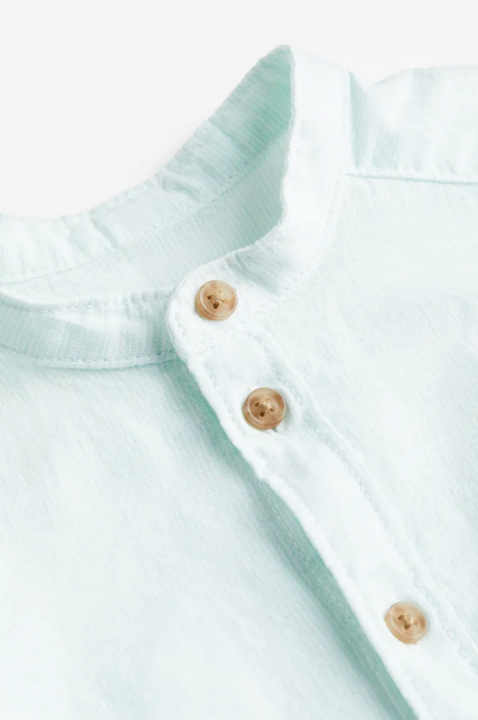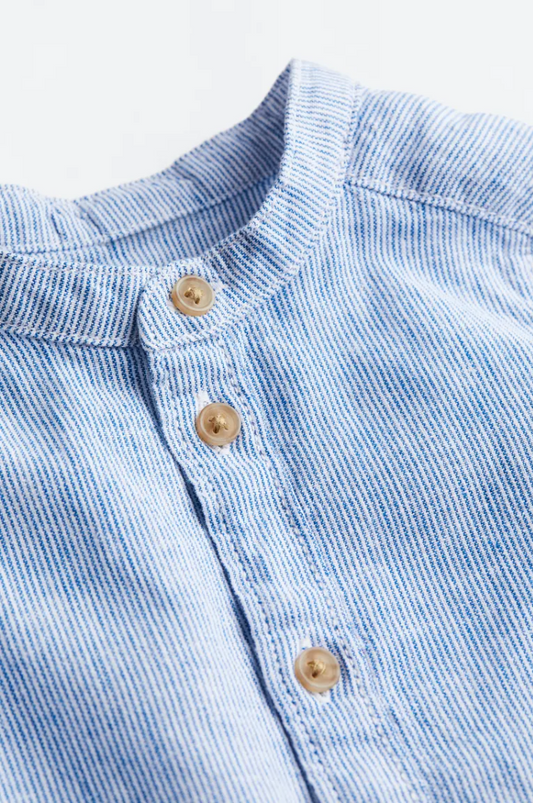TRAJE SHORT CON TIRANTES + CAMISA AZUL