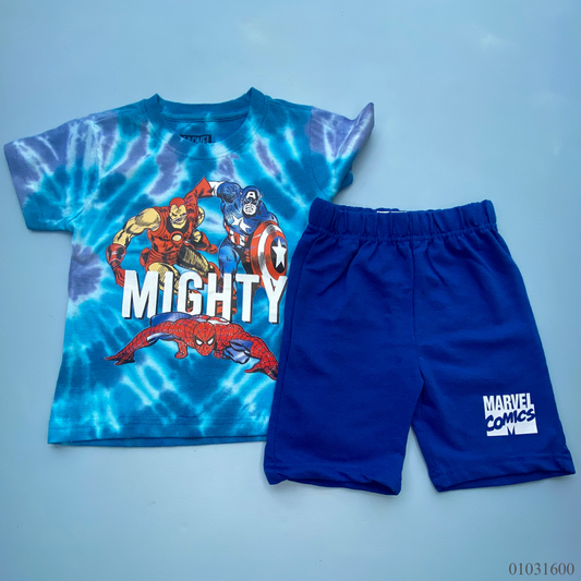 TRAJE NIÑO 2 PIEZAS SHORT AZUL CAMISA AVENGERS