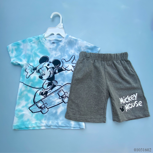 TRAJE NIÑO 2 PIEZAS SHORT GRIS CAMISA MICKEY