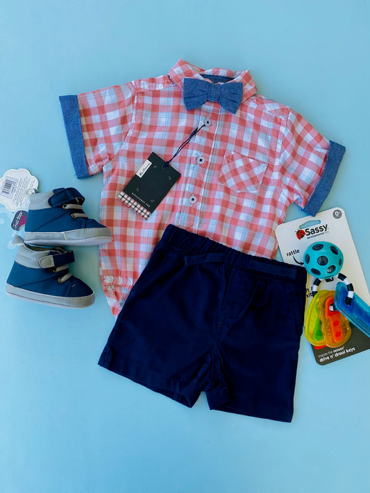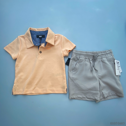 TRAJE NIÑO 2 PIEZAS DKNY CAMISA COLOR MELON SHORT