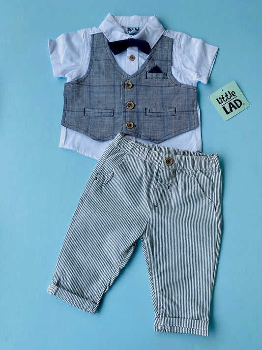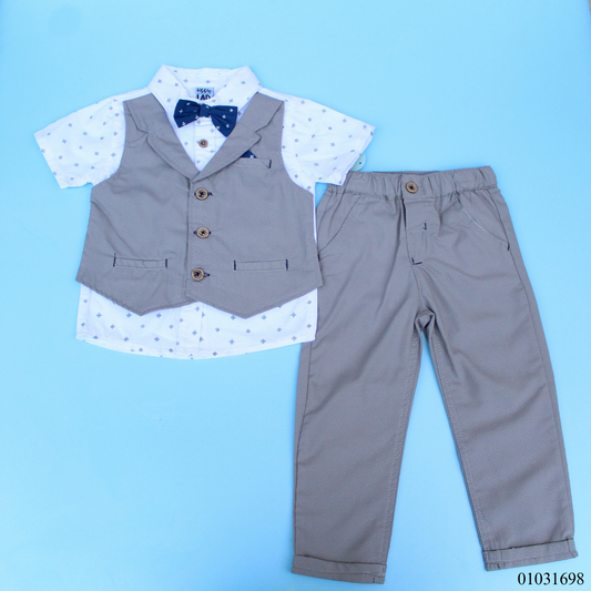TRAJE DE BEBE NIÑO 3 PIEZAS PANTALON CAMISA BLANCA CON CHALECO INTEGRADO Y CORBATIN
