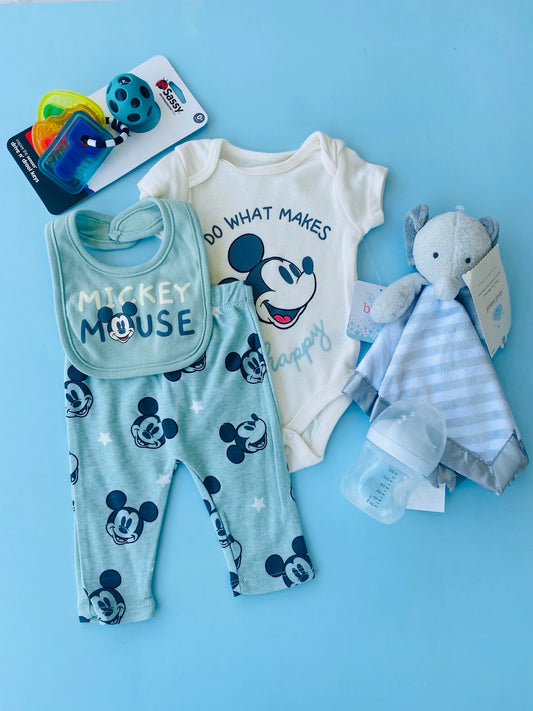 TRAJE NIÑO 3 PIEZAS MICKEY BABERO PANTALON VERDE