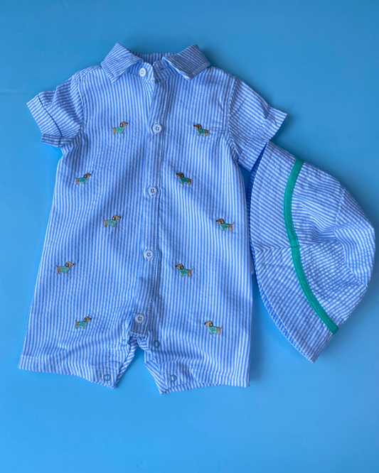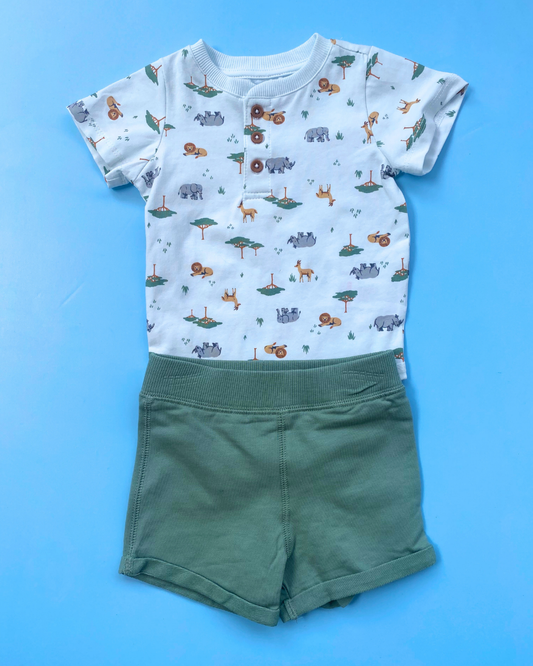 TRAJE CARTER SHORT BORDADO BEIGE Y VERDE