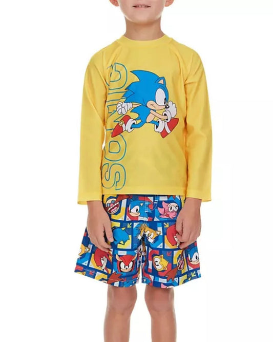 TRAJE BAÑO 2 PZS SONIC AMARILLO MANGL UPF 50+