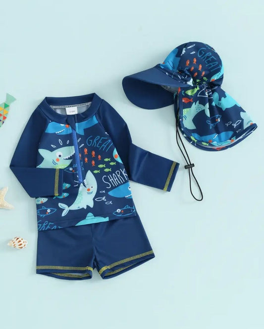 TRAJE DE BAÑO 3PZS TIBURON AZUL C/GORRO
