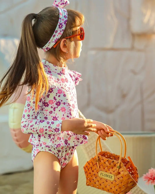 TRAJE BAÑO FLOREADO ROSA MORADO C/VINCHA
