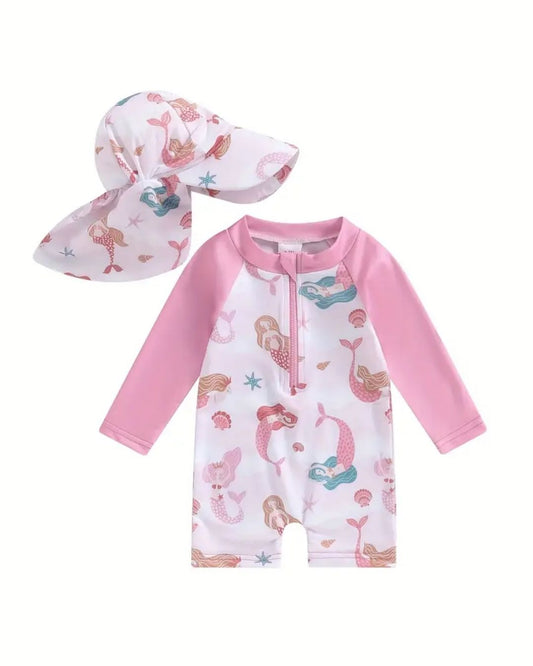 TRAJE DE BAÑO SIRENITA ROSA C/GORRO