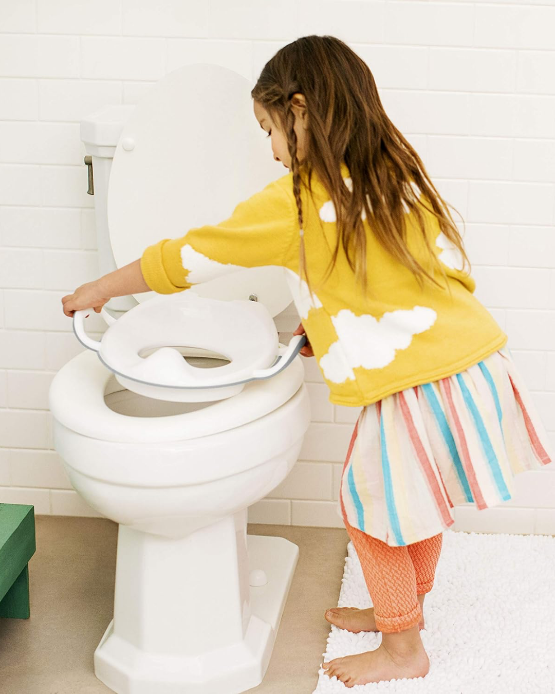 El asiento de entrenamiento para inodoro Munchkin Sturdy es un asiento de orinal diseñado para niños pequeños, que se adapta a la mayoría de los inodoros estándar.