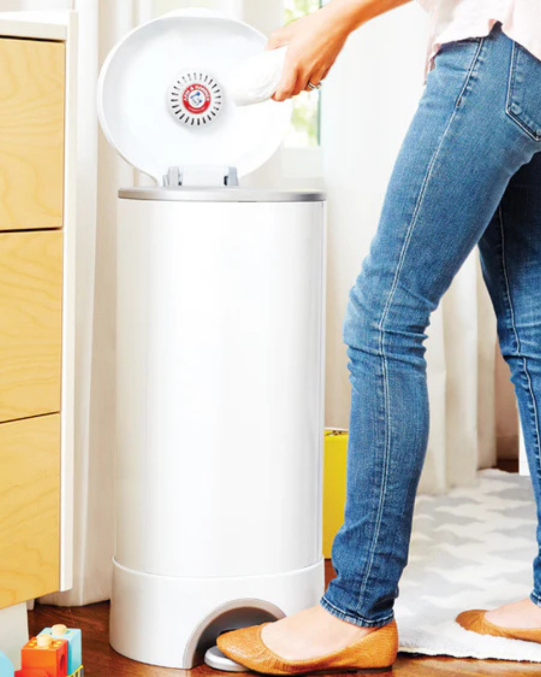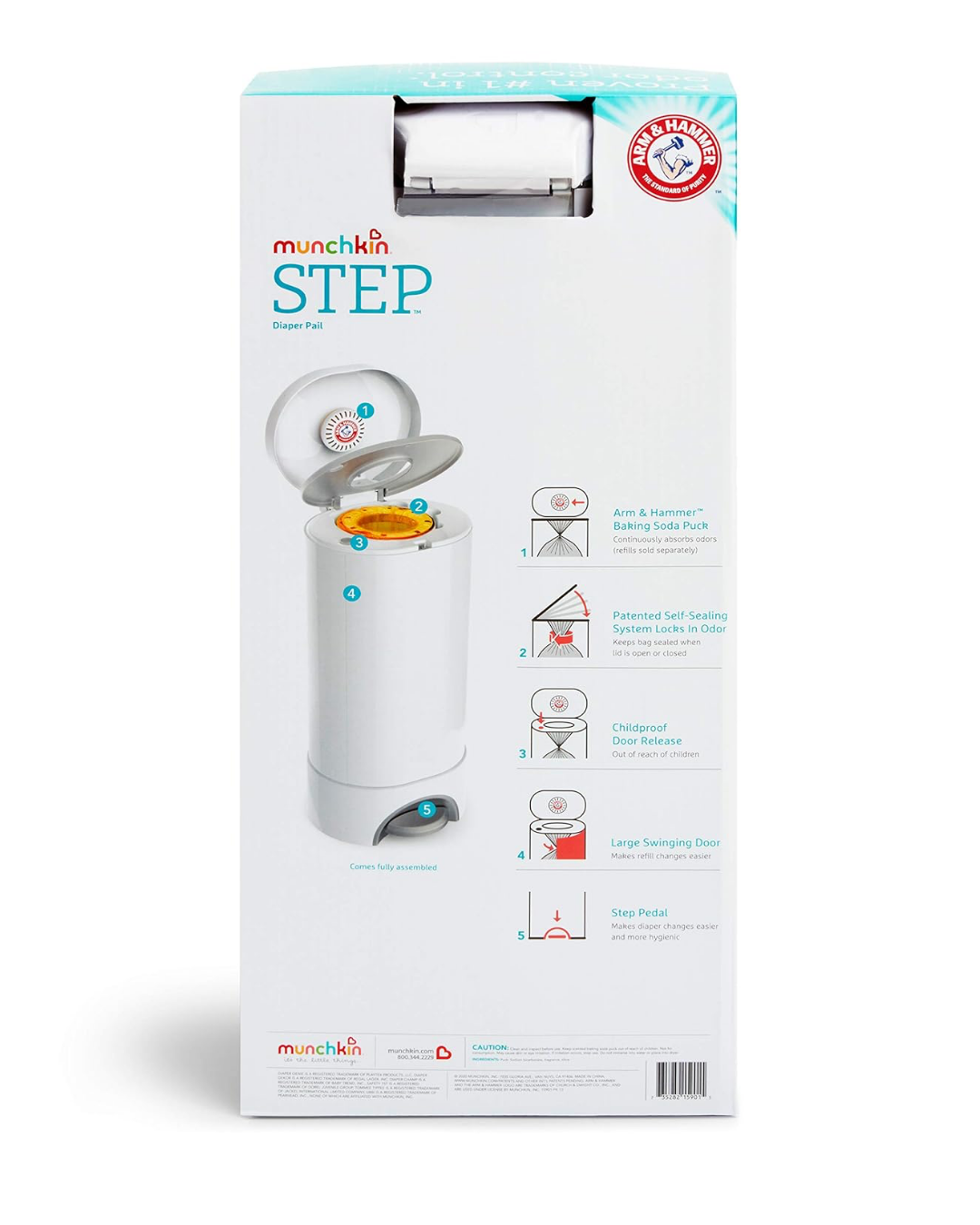 El Munchkin Step Diaper Pail es un contenedor de pañales diseñado para controlar los olores y facilitar el desecho de pañales usados.