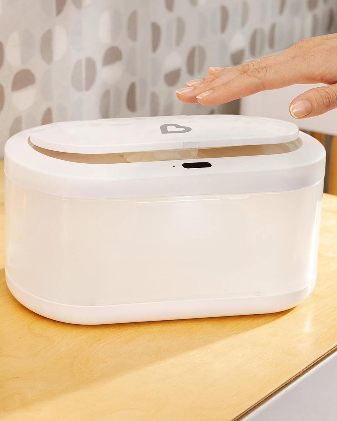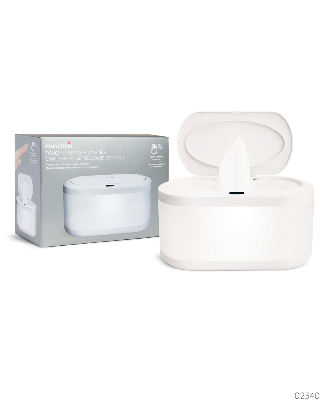 El Munchkin Touch Free Wipe Warmer es un calentador de toallitas para bebés sin contacto, diseñado para facilitar los cambios de pañal y proporcionar toallitas tibias.
