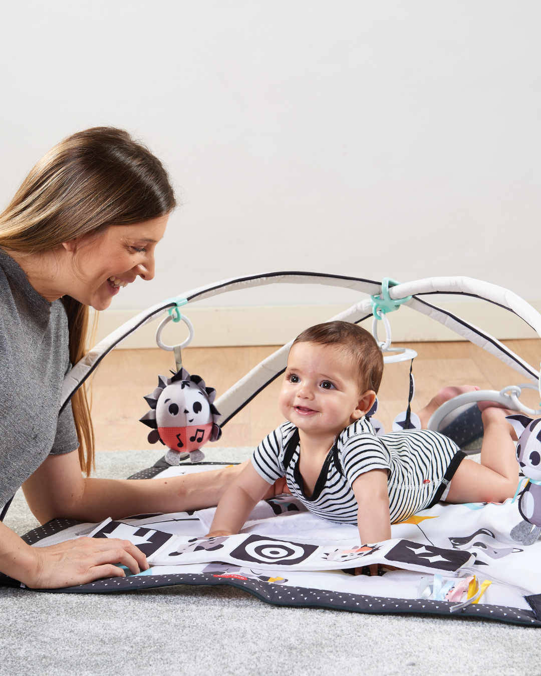 Arcos ajustables: Incluye arcos que pueden ajustarse o retirarse, permitiendo diferentes modos de juego y facilitando el tiempo boca abajo (tummy time).