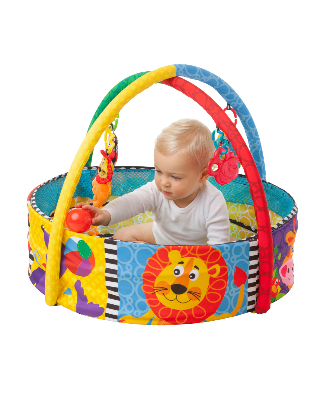 Estimulación sensorial: Los diferentes juguetes y texturas, junto con las bolas, fomentan el desarrollo sensorial y motor del bebé.